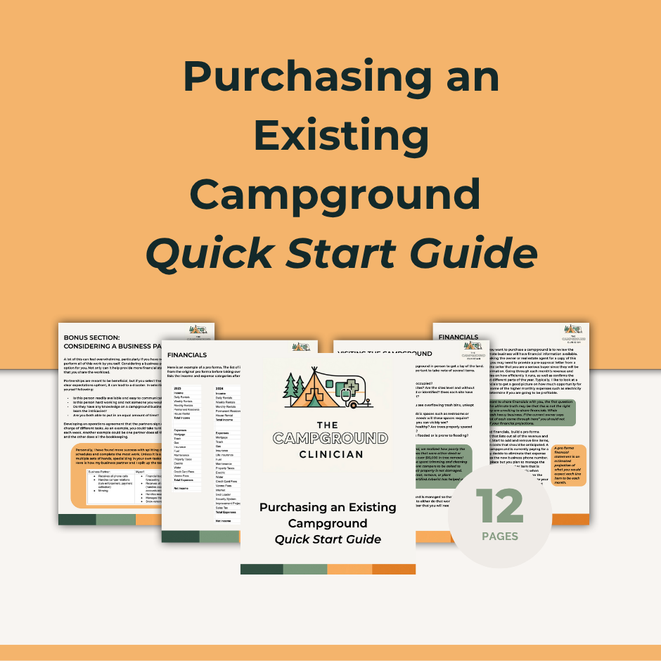 I am a co-owner and operator of a small campground in the Midwest. We have owned a campground for nearly three years but had no prior campground management experience. My intention with The Campground Clinician YouTube channel and these digital products is to help aspiring or current campground owners access operations information in order to optimize their business.